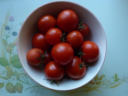 The cherry tomatoes do very well in hanging baskets and tubs, and 'Gartenperle' is a very pretty trailing type. So, in the case of tomatoes, you have all the bases covered!